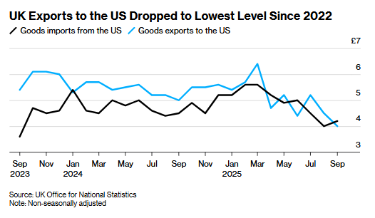 英国国家统计局表示,英国对美商品出口下降11.4%(约合5亿英镑),降至2022年1月以来最低水平。该局补充称,自4月美国总统特朗普宣布加征关税后,相关出口数据持续疲软。