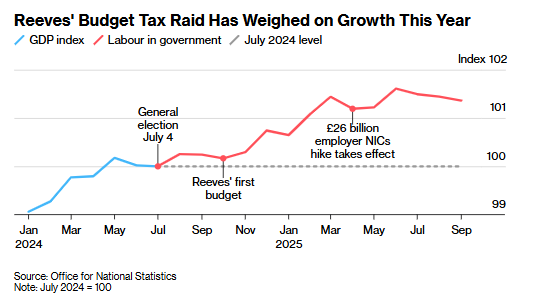 “总体来看,面对增税压力和海外经济疲软,英国经济难以获得充足增长动力,”凯投宏观英国副首席经济学家Ruth Gregory表示,“且即将到来的预算案中的增税措施可能导致2026年GDP减少约0.2%,因此没有理由认为经济增长会从当前水平大幅加速。”